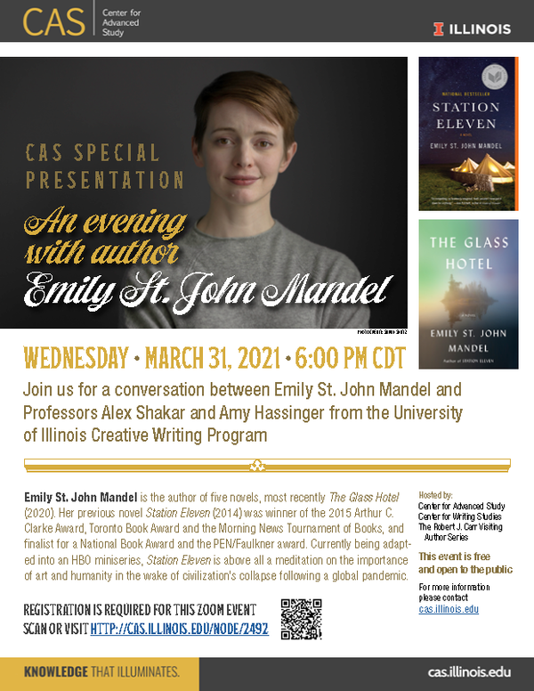 Join us for a conversation between Emily St. John Mandel and Professors Alex Shakar and Amy Hassinger from the University of Illinois Creative Writing Program