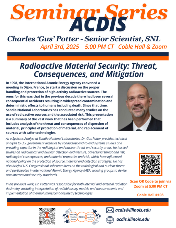 As a Systems Analyst at Sandia National Laboratories, Dr. Gus Potter provides technical analysis to U.S. government agencies by conducting endto-end systems studies and providing expertise in the radiological and nuclear threat and security areas. He has led studies on radiological and nuclear detection architecture, adversarial threat and risk, radiological consequences, and material properties and risk, which have influenced national policy on the protection of source material and detection strategies. He has also briefed U.S. Congressional subcommittees on the radiological and nuclear threat and participated in International Atomic Energy Agency (IAEA) working groups to devise new international security standards. In his previous work, Dr. Potter was responsible for both internal and external radiation dosimetry, including interpretation of radiobioassay models and measurements and implementation of thermoluminescent dosimetry technologies. Dr. Potter also serves as an adjunct professor in the Nuclear Engineering Department at the University of New Mexico. He is active in the Health Physics Society and the American Academy of Health Physics (as Past President). He previously served as Chair, Board Member, and Exam Panel Chair of the American Board of Health Physics. Dr. Potter participates in standards activities as Vice Chair of the ANSI/HPS Accredited Standards Committee N13 and on three working groups of the International Organization for Standardization. He serves as an associate editor and regular reviewer for Health Physics and as a regular reviewer for Radiation Protection Dosimetry; he has written or contributed to over sixty technical reports and articles for various publications. In 2000, Dr. Potter earned his Ph.D. in physics at the University of Massachusetts Lowell, where he studied applications of internal radiation dosimetry models promulgated by the International Commission on Radiological Protection. He is a Distinguished member of the American Board of Health Physics (certified in 1997) and a Fellow of the Health Physics Society. He is the 2017 awardee of the William McAdams Outstanding Service Award from the American Board of Health Physics and the 2021 awardee of the Joyce B. Davis Memorial Award from the American Academy of Health Physics.