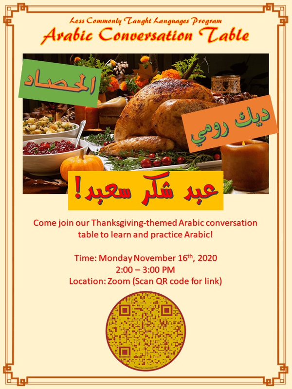 Come join our Thanksgiving-themed Arabic conversation table to learn and practice Arabic!