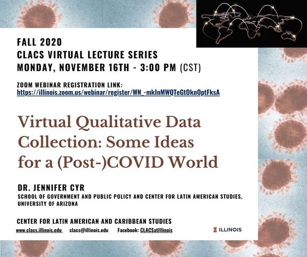 The onset of a global pandemic has been disruptive for many things, including our capacity to undertake fieldwork. Still, even before the arrival of COVID-19, the possibility of traveling to collect data in the field was constrained by resource scarcity, personal responsibilities, and other health concerns. In this talk, I consider the drawbacks and benefits of undertaking virtual interviews and focus groups, and I offer some advice on transitioning from conventional (read: on the ground) data collection to virtual data collection. I suggest that the transition to virtual fieldwork need not mark a decline in quality, qualitative research designs, but it does require considering a new set of challenges.