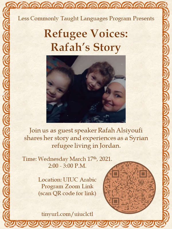 Join us as guest speaker Rafah Alsiyoufi shares her story and experiences as a Syrian refugee living in Jordan.