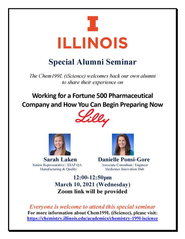 CHEM199L Special Alumni Seminar, Sarah Laken & Danielle Ponsi-Gore, "Working for a Fortune 500 Pharmaceutical Company and How You Can Begin Preparing Now"