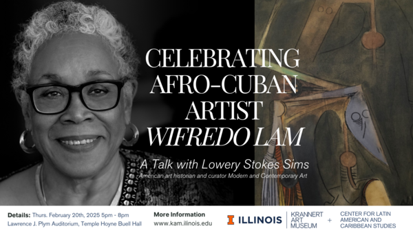 Join Krannert Art Museum and the Center for Latin American and Caribbean Studies in celebrating the museum's recent acquisition of Personage by Afro-Cuban artist Wifredo Lam. CLACS and KAM invite the public to a talk by American art historian and curator Lowrey Stokes Sims, followed by a public reception and musical performance from the Afro-Caribbean Jazz Collective.