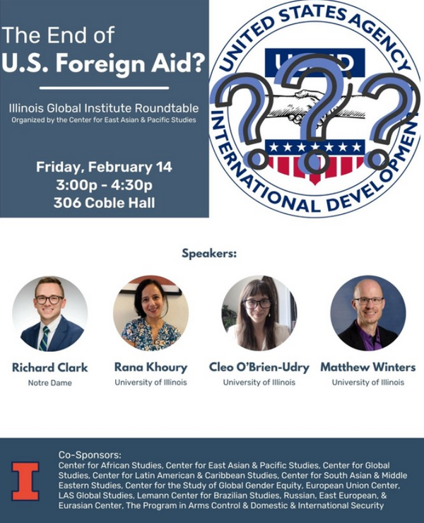 - Illinois Global Institute; Co-Sponsors: Center for African Studies, Center for East Asian & Pacific Studies, Center for Global Studies, Center for Latin American & Caribbean Studies, Center for South Asian & Middle Eastern Studies, Center for the Study of Global Gender Equity, European Union Center, LAS Global Studies, Lemann Center for Brazilian Studies, Russian, East European, & Eurasian Center, The Program in Arms Control & Domestic & International Security