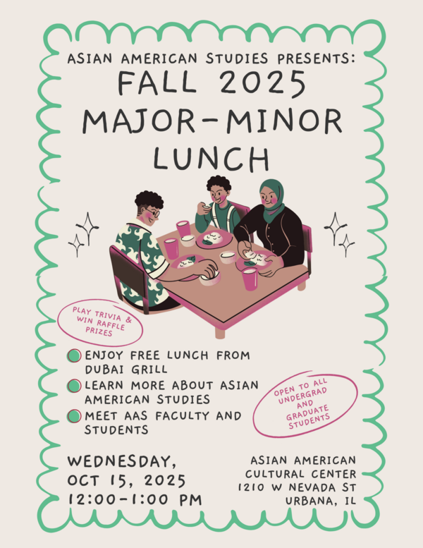 Join us on Wednesday, October 15th for our major-minor lunch! You do NOT have to be a part of our program to attend lunch- all students are welcome. Come learn about our department, chat with folks from AAS, and maybe even win a prize or two.