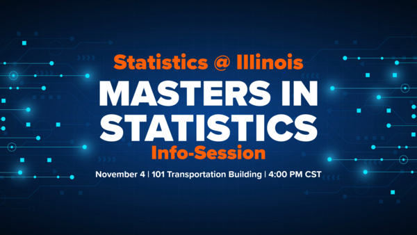 Interested in statistics and data science? Want to learn more about how a graduate degree in statistics can create more opportunities for your future? Join us for an informative session on the Master’s Programs in Statistics at the University of Illinois Urbana-Champaign! Designed for prospective students interested in pursuing a graduate degree in statistics, this session will cover everything you need to know about our programs and the application process.