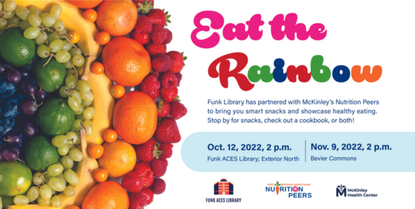 For National Cookbook Month, Funk ACES Library has partnered with McKinley Health Center’s Nutrition Peers to bring you smart snacks and promote eating "all colors of the rainbow". Bring your iCard to check-out a cookbook, grab a snack, or both! Visit our events & exhibits calendar to learn more about this and other events.