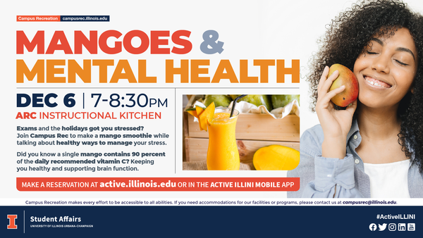 Exams and the Holidays got you stressed? Join Campus Rec to make a delcious smoothie while discussing healthy ways to manage your stress.