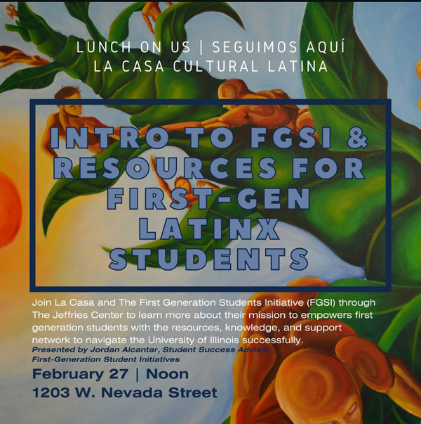 Come learn about the First-generation Student Initiative and resources for first-gen Latinx students with Jordan Alcantar, Student Success Advisor for FGSI.