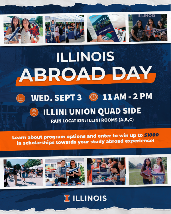 Illinois Abroad Day is a one-stop-shop for all things study abroad, from Financial Aid to choosing the right program for you, a variety of experts from across campus will be present to help you understand the study abroad process at Illinois!