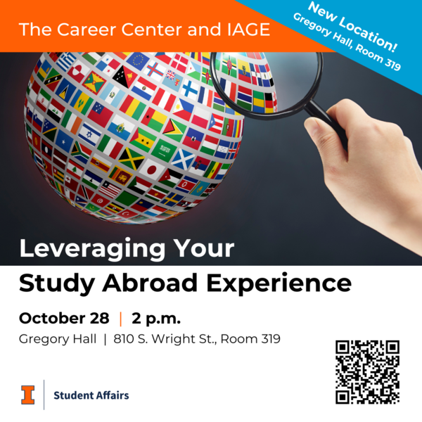 Join us for Leveraging Your Study Abroad Experience, hosted by The Career Center and IAGE. Learn how to identify and articulate the valuable skills and career competencies gained through your study abroad experience, such as adaptability, cultural communication, critical thinking, problem-solving, and teamwork. An alum will share their real-world experience and insights on applying their experience in today’s job market. Don’t miss this opportunity to connect your study abroad journey to your career goals.