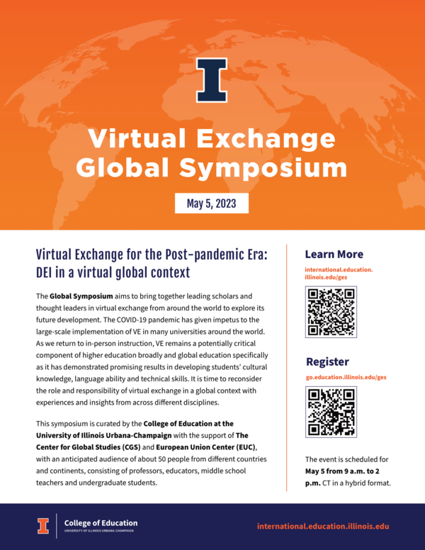 The event is being curated by the University of Illinois Urbana-Champaign, College of Education with the support of The Center for Global Studies (CGS) and European Union Center (EUC), with an anticipated audience of about 50 people from different countries and continents, made up of professors, educators, middle school teachers, and undergraduate students.