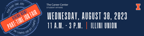 The Illinois Part-Time Job Fair is intended for local employers with paid, non-technical, part-time job opportunities available on campus or in the Champaign-Urbana community. The Fair is advertised and open to all students on campus seeking opportunities to make some extra money and build their career competencies while completing their academics.