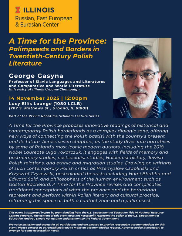 REEEC Noontime Scholars Lecture: George Gasyna, "A Time for the Province: Palimpsests and Borders in Twentieth-Century Polish Literature"