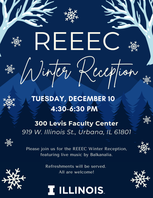 Please join us on Tuesday, December 10th for the REEEC Winter Reception, featuring live music by Balkanalia. Refreshments will be served. All are welcome!