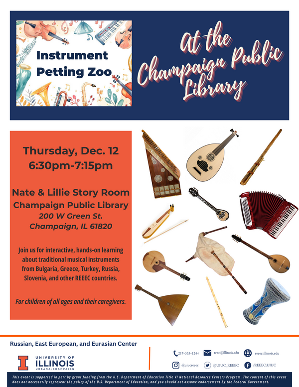 Join us for interactive, hands-on learning about traditional musical instruments from Bulgaria, Greece, Turkey, Russia, Slovenia, and other REEEC countries.
