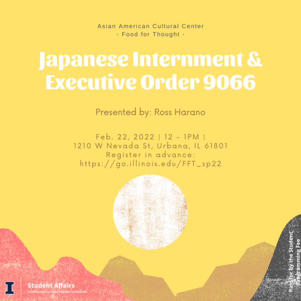 - Food for Thought, part of the Office of Inclusion and Intercultural Relation's Lunch on Us series, is a weekly noontime discussion focused on topics relevant to the Asian American community. Past discussions include topics such as nutrition, mental health, sexual health, and media representation of Asian Americans. For a full list of speakers, please visit: https://oiir.illinois.edu/aacc/our-programs/food-thoughtRSVP required - go.illinois.edu/FFT_sp22Paid for by the Student Cultural Programming Fee