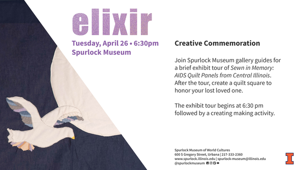 Join Spurlock Museum gallery guides for a brief exhibit tour of Sewn in Memory: AIDS Quilt Panels from Central Illinois. After the tour, create a quilt square to honor your lost loved one.