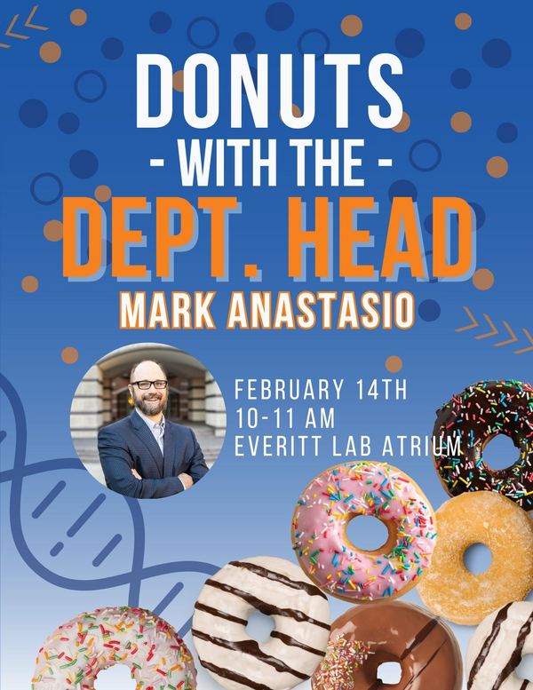 On February 14th, stop by the Everitt Lab Atrium from 10-11 AM to grab a doughnut and say hello to our department head, Professor Mark Anastasio!