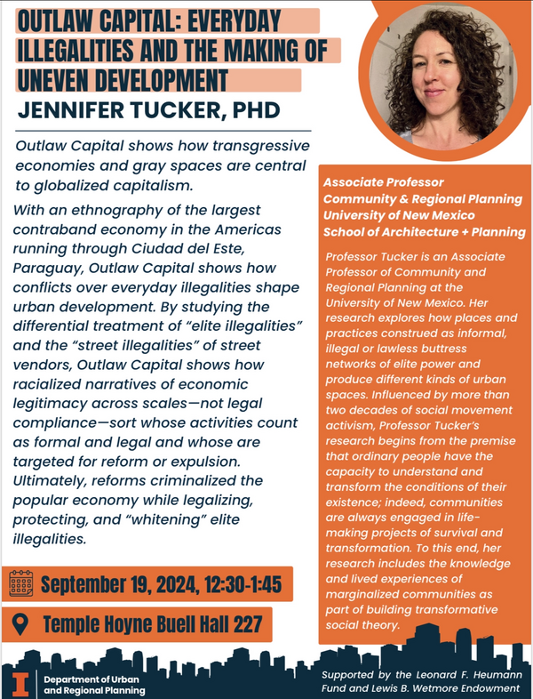 Join us for Dr. Jennifer Tucker's presentation of her book Outlaw Capital: Everyday Illegalities and the Making of Uneven Development, which explores Ciudad del Este and the tri-border region.