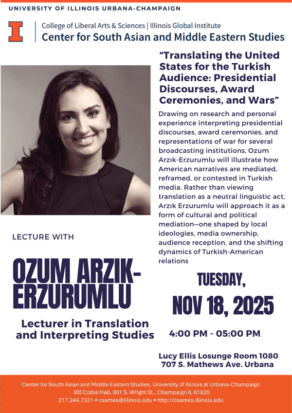 CSAMES Lecture: "Translating the United States for the Turkish Audience: Presidential Discourses, Award Ceremonies, and Wars." Ozum Arzik