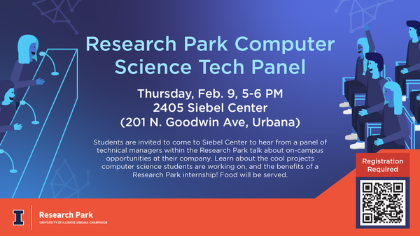 Students are invited to come to Siebel Center to hear from a panel of technical managers within the Research Park talk about on-campus opportunities at their company. Learn about the cool projects computer science students are working on, and the benefits of a Research Park internship! Food will be served.