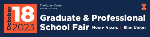 The Graduate & Professional School Fair, hosted by The Career Center, connects Illinois students with admissions representatives from over 100 schools. This is your opportunity to explore advanced degrees and hear directly from admissions staff from graduate and professional programs in health, law, science, business, engineering, arts, humanities, and more.