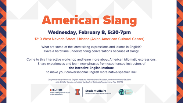 What are some of the latest slang expressions and idioms in English? Have a hard time understanding conversations because of slang? Come to this interactive workshop and learn more about American idiomatic expressions. Share experiences and learn new phrases from experienced instructors of the Intensive English Institute to make your conversational English more native-speaker like!