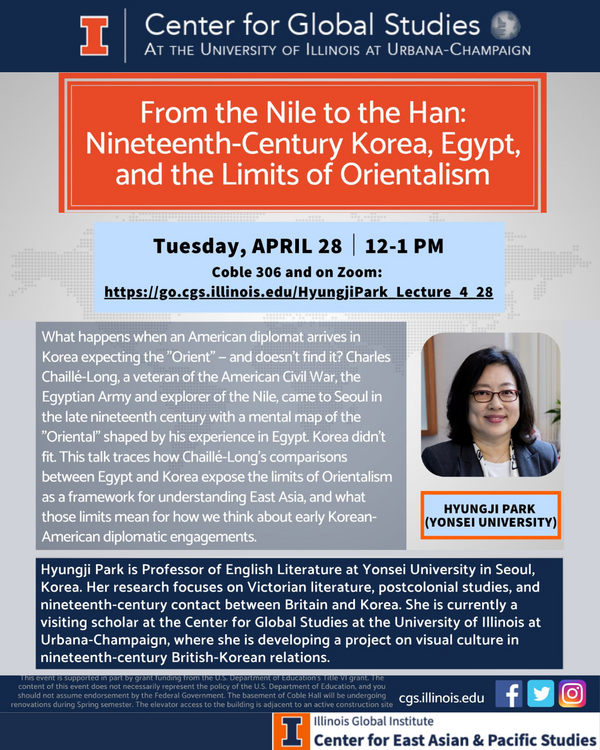 Center for Global Studies Speaker | "From the Nile to the Han: Nineteenth-Century Korea, Egypt and the Limits of Orientalism" | Hyungji Park (Yonsei University)