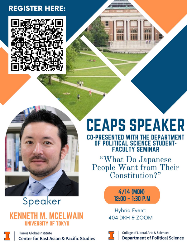 Abstract: The Constitution of Japan, the oldest unamended constitution in the world, has become the focus of renewed partisan debate, with government leaders increasingly advocating for revision. However, whether this elite-driven initiative aligns with public sentiment remains uncertain. This talk examines the factors shaping civic support for and opposition to constitutional change by analyzing two key dimensions of constitutional legitimacy. The first is procedural: do Japanese citizens view the origins of their constitution and the legitimacy of amendment debates as appropriate? The second is substantive: to what extent do the rights and institutions enshrined in the constitution align with public conceptions of an ideal state? Drawing on original surveys and experiments, this study sheds light on the evolving role of constitutionalism in Japan and its broader implications for democratic governance.