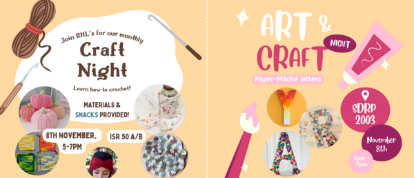 Join Res Hall Libraries for our last craft night of the semester! As always we have two locations with different crafting options for you. Join us at ISR for crochet! Or make your way to SDRP to make decorative paper-mâché letters to add to your living space!
