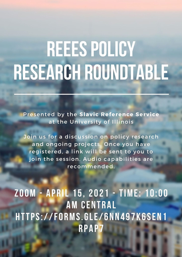 Join us for a discussion on policy research and ongoing projects related to Russian, East European, and Eurasian Studies. Once you have registered, a link will be sent to you to join the session. Audio capabilities are recommended.
