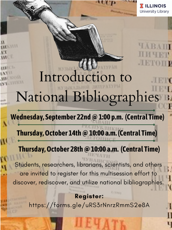 Join the Slavic Reference Service as we explore this foundational multidisciplinary source. Students, faculty, librarians, scientists, and others are welcome to register to participate in this multisession effort to discover or rediscover national bibliographies.