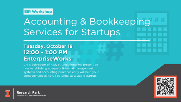 Join us on Tuesday, October 18 from 12:00-1:00 PM for an Accounting & Bookkeeping Services for Startups Workshop. Chris Schroeder of Kelly's Accounting will present on how establishing adequate financial management systems and accounting practices early will help your company unlock its full potential as a viable startup.