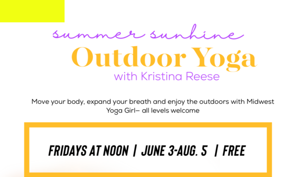 Join Kristina for pop-up Outdoor Yoga on Friday, July 15 from 12:00-1:00pm. These classes are free and open to all, with modifications for beginners and seasoned yogis, alike. Bring your own mat, water bottle, and sunscreen. In case of inclement weather, classes will be moved virtually to zoom.