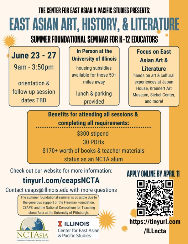 The Center for East Asia & Pacific Studies (University of Illinois Urbana - Champaign) are hosting our first seminar in collaboration with The National Consortium for Teaching about Asia (NCTA).