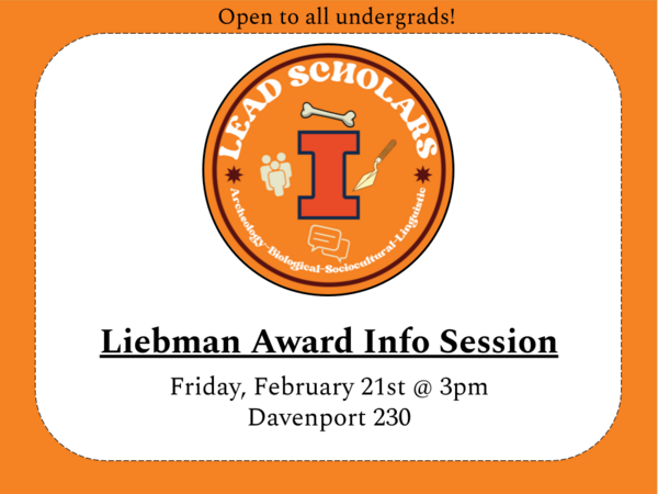 Join LEAD on Friday, February 21, 2025 at 3 PM in Davenport Hall 230 for a Liebman Award Info Session hosted by Dr. Jelinek. The Liebman award supports undergraduate internships, research, and field school experience in anthropology. This info session will review the application process for those interested in submitting. We hope to see you there!