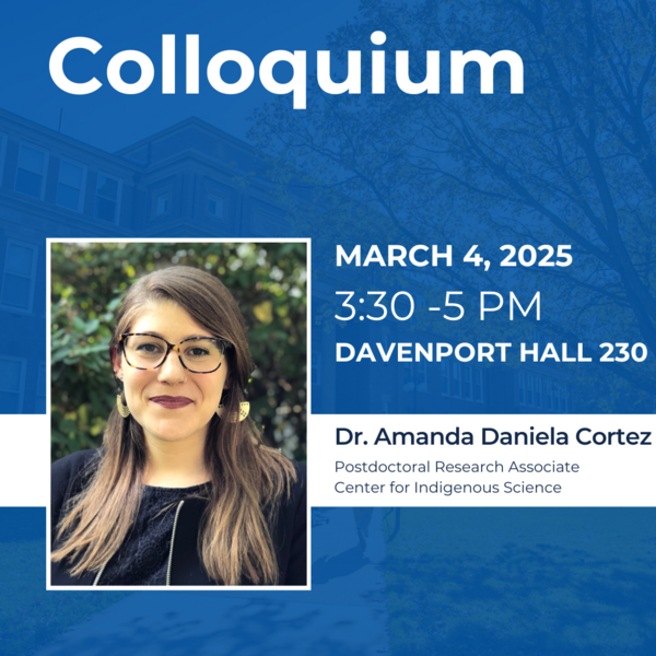 Join us on March 4, 2025 from 3:30 - 5 PM in Davenport Hall 230 for a talk by Dr. Amanda Daniela Cortez! Dr. Cortez is a Postdoctoral Research Associate in the Center for Indigenous Science. Trained as a cultural anthropologist, Amanda’s work sits at the intersection of Indigenous studies, animal studies, and anthropology to address questions of Indigenous sovereignty and human-other animal relationships. Her current book project is an ethnography of the politics of Indigeneity, gender, and multispecies relating in Cusco, Peru’s photography tourism industry. The book centers the lives of Quechua women and animals as they confront and refuse state-sanctioned violence while working in cultural tourism.