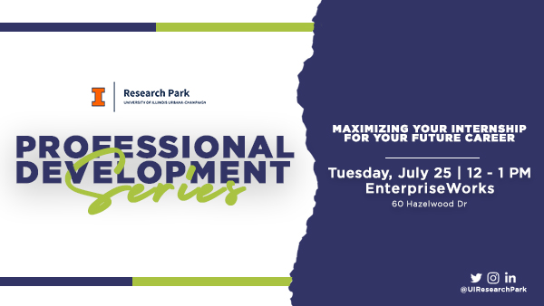 Join us on Tuesday, July 25 from 12-1pm for "Maximizing Your Internship For Your Future Career" Panel in the EnterpriseWorks Atrium.