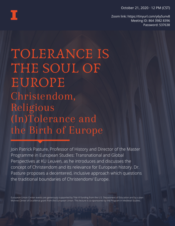 This lecture will be given by Patrick Pasture, Professor of History and Director of the Master Programme in European Studies: Transnational and Global Perspectives at KU Leuven. Dr. Pasture is currently Senior Research Fellow at the Leibniz-Institute for European History in Mainz, Germany. His lecture will introduce and discuss the concept of Christendom and its relevance for European history, focusing on the ‘first phase’ of Western (or Latin) Christendom, between its conception in the Early Middle Ages and its transformation as a result of the Reformation. Dr. Pasture proposes a decentered, inclusive approach which questions the traditional boundaries of Christendom/ Europe. While the Middle Ages have been identified as the origin of the European ‘persecuting society’, that needs to be qualified taking in account not only different geographies and temporalities, but also the different, and changing meanings of identity, religion and the secular. It results not only in a surprisingly pluriform image, but questions the narrative of Europe that we are used to hear.