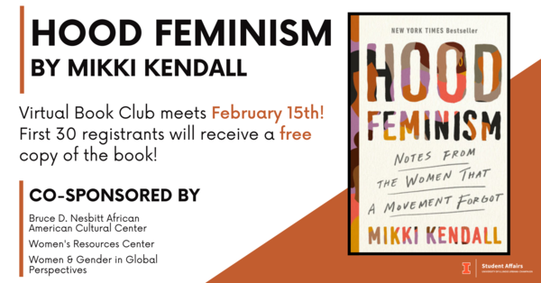 Book club discussion for Illinois Alumna Mikki Kendall’s book “Hood Feminism”. Please email Anita Kaiser at arkaiser@illinois.edu if you would like a complimentary copy of the book. Limited copies available.