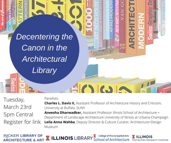 This event is hosted by the Ricker Library of Architecture and Art in partnership with the Illinois School of Architecture; funding is provided by the University of Illinois Library Innovation Fund and co-sponsored by the Humanities Research Institute.