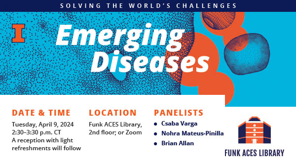 We invite you to attend the panel in-person on the 2nd floor of the Funk ACES Library for an opportunity to talk with the panelists and other attendees during the reception from 3:30-4:00 p.m. Also, for in-person attendees, we will have a raffle for two disease-related books. We are providing a Zoom option for people to attend the panel virtually.
