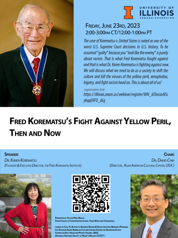 This event is part of the Yellow Peril Redux: From Coolies to Concentration Camps, Trade Wars and Coronavirus Project funded by the Call to Action to Address Racism & Social Injustice Research Program at UIUC.