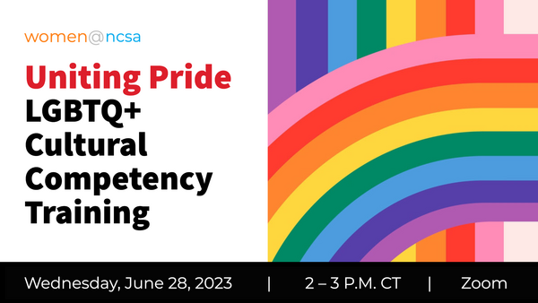 Women@NCSA invites you to “Uniting Pride LGBTQ+ Cultural Competency Training” on Wednesday, June 28 from 2–3 p.m. on Zoom led by Nicole Frydman, director of operations at Uniting Pride – a non-profit organization that advocates for the equality, wellness, and visibility of the LGBTQ+ communities in Champaign County.