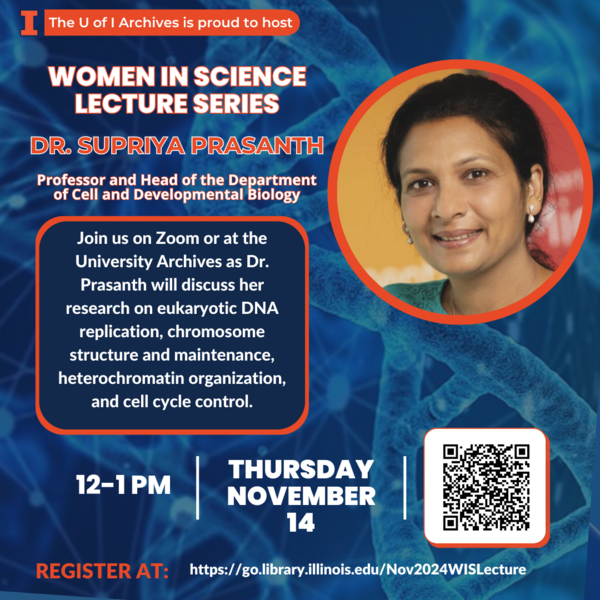 Professor and Head of Department of Cell and Developmental Biology, Dr. Prasanth will discuss her research on eukaryotic DNA replication, chromosome structure and maintenance, heterochromatin organization, and cell cycle control.