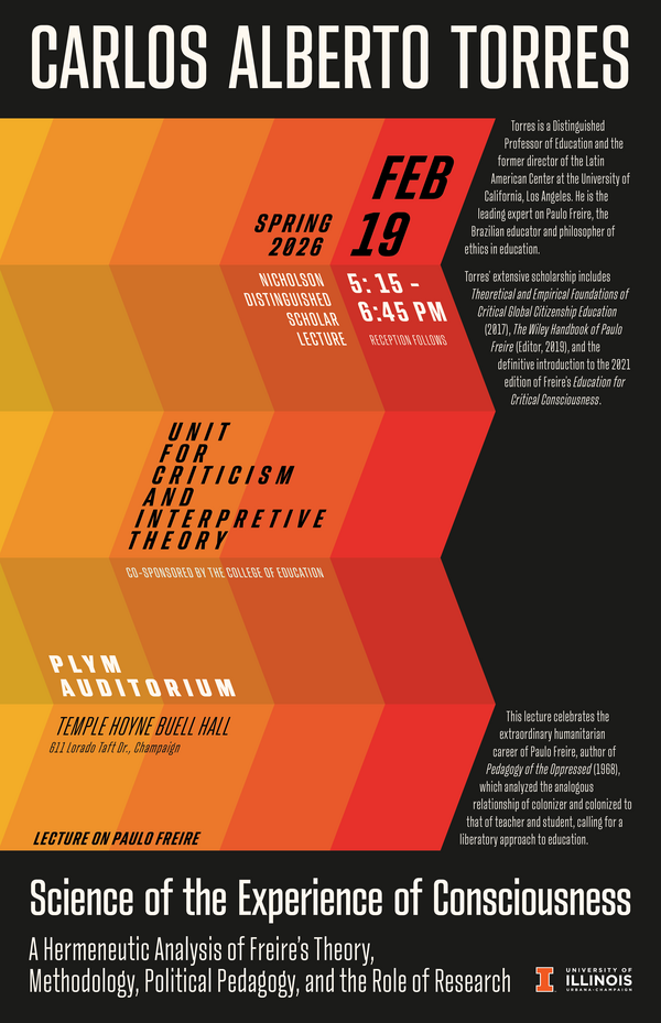On February 19, Carlos Alberto Torres, Distinguished Professor at UCLA and former director of UCLA's Latin American Center, will give a lecture celebrating the extraordinary humanitarian career of Paulo Freire, author of Pedagogy of the Oppressed, in which he analyzed the analogous relationship of colonizer and colonized to that of teacher and student. Torres is the leading expert on Paulo Freire, Brazilian educator and philosopher of ethics in education. The lecture will take place at 5:15 PM at the Plym Auditorium in Temple Buell Hall. A reception will follow the lecture.