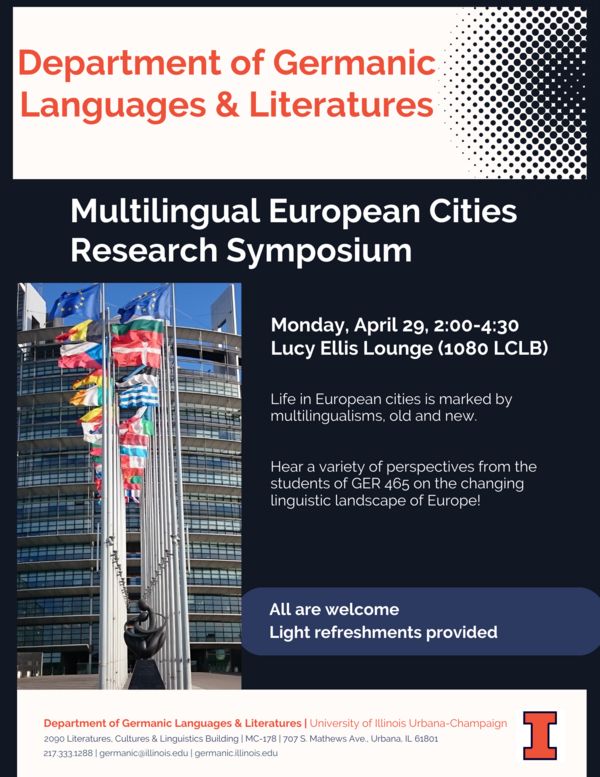 Come hear a variety of perspectives from the students of GER 465 on the changing linguistic landscape of Europe. The event is open to the public, and light refreshments will be provided.