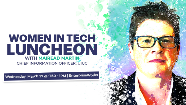 Join us on Wednesday, March 27, from 11:45 to 1:00 PM for a Women in Tech Luncheon featuring University of Illinois Chief Information Officer Mairead Martin.