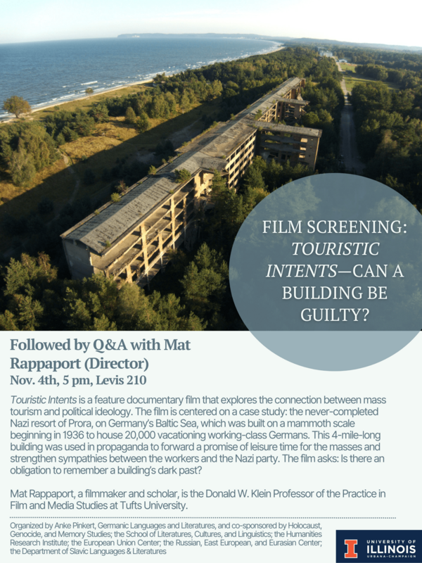 - Germanic Languages and Literatures; co-sponsored by Holocaust, Genocide, and Memory Studies, the School of Literatures, Cultures, and Linguistics, the Humanities Research Institute, the European Union Center, Russian, East European, and Eurasian Center, the Department of Slavic Languages & Literatures